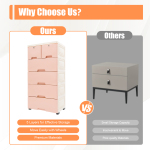 ЕЛЕГАНТНО ТА ПРАКТИЧНО Сучасний та елегантний вигляд, підходить для шаф, спалень, дитячих кімнат, ігрових кімнат, вхідних зон тощо. Гарний вибір в якості дитячого або дитячого комода 6 ШУХЛЯД ОРГАНІЗАТОР Універсальний і універсальний варіант зберігання для будь-якої кімнати будинку, має 4 великі ящики та 2 маленькі шафи вгорі (з ключами), 6 ящиків для великого простору для зберігання ГНУЧКИЙ РУХ Шафа для зберігання на колесах дозволила легко переміщати куди завгодно. 4 коліщатка входять у комплект, щоб створити портативне рішення для зберігання. Легко висувні ручки зі стопорами для ящиків запобігають випадковому вийманню ящиків МІЦНІ ПЛАСТИКОВІ ЯЩИКИ Виготовлений з високоякісного поліпропіленового пластику, який є безпечним матеріалом, здоровим і міцним, стабільним, але легким, водонепроникним Міцний ПП-матеріал має хорошу ударостійкість, міцність на розтягування та міцність на вигин, твердий, міцний і його нелегко зламати, що гарантує тривалий термін служби. Гнучкий рух Підлога має чотири колеса. Коли необхідно переставляти контейнери залежно від випадку, вам потрібно лише злегка натиснути на них, щоб перемістити, заощаджуючи час і сили. Модний стиль В основному він виготовлений з рожевого та білого кольорів з візерунком з боків та ззаду, що надає вітальні теплу та романтичну атмосферу та повністю демонструє модний стиль. Висока вантажопідйомність Зберігання великої кількості предметів протягом тривалого періоду часу або тимчасове складання важких предметів (макс. 25 кг), його розумна конструкція забезпечує надійну підтримку та демонструє відмінну адаптивність. Легко встановлюється Виріб має просту структуру та комплектні монтажні компоненти та може бути швидко зібраний. Незабаром може бути зданий в експлуатацію. Помічник на складі Він має чотири шари великих ящиків, один шар маленьких ящиків (загалом 6 ящиків) і верхню панель із нековзкою канавкою для зберігання. Шухляди мають великий внутрішній простір, що допомагає ефективно вирішити проблему безладу та грамотно організувати домашнє життя. Технічні характеристики Матеріальний: PP Колір: Рожевий + Білий Стиль: Сучасний Форма: Прямокутна Лікування: Лиття під тиском Кількість шарів: 5 Кількість ящиків: 6 Максимальна вантажопідйомність: приблизно 25 кг/55,1 фунтів Внутрішні розміри ящиків: 44,5 x 31 x 15 см/17,5 x 12,2 x 5,9 дюймів (великий); 19,2 x 31,7 x 15 см (маленький) Розмір продукту: 102 x 50 x 34,8 см (40,2 x 19,7 x 13,7 дюймів) Розмір упаковки: 39,6 x 49,5 x 52 см (15,6 x 19,5 x 20,5 дюймів) Вага нетто: 6,45 кг (14,2 фунта) Вага брутто: 7,55 кг (16,6 фунтів) Комплект поставки 1* 5-шаровий контейнер для зберігання 2 пари* ключів 5* колеса 4* футів Технічні характеристики
