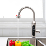 Швидке нагрівання Завдяки високоякісній нагрівальній трубці з нержавіючої сталі та потужності 3000 Вт цей електричний кран може забезпечити гарячу воду за короткий час, дозволяючи вам мити обличчя/руки/посуд за комфортної температури. Відображення температури в реальному часі Це означає, що ви можете в будь-який час спостерігати за зміною температури та уникнути ризику опіків. Захист безпеки Механізм розділення води та електрики, рейтинг водонепроникності IPX4, захист від сухого горіння, захист від витоку та численні заходи безпеки значно покращують безпеку використання виробу. Енергозбереження та захист навколишнього середовища Керамічний сердечник клапана має чудову герметичність, що може зменшити витік води та відходи. Піноутворювач із рівномірно розподіленими отворами гарантує, що вода виходить тонко та рівномірно без розбризкування, що економить енергію та воду та має хороший амортизуючий ефект. Простота в експлуатації Ви можете регулювати потік і температуру води (77-122 ℉), обертаючи ручку (з літерними позначками холодна/гаряча/стоп), щоб отримати подвійне використання холодної та гарячої води, приносячи вам чудову насолоду. Навіть люди похилого віку та діти можуть легко використовувати його. Поворотна конструкція на 360° Він оснащений носиком, що обертається на 360°, щоб задовольнити потреби у воді в різних напрямках, допомагаючи вам очищати більш ретельно. Підходить для одинарної або подвійної раковини. Високоякісні матеріали Трубка з нержавіючої сталі 304, високотемпературна та екологічно чиста оболонка з АБС-пластику та процес гальванічного покриття роблять цей продукт нержавіючим, безпечним, зносостійким, стійким до корозії та довговічним. Безбаковий водонагрівач Більше не потрібно зберігати воду, що є більш гігієнічним, оскільки вапняний наліт і бактерії не накопичуються там так легко, а догляд за змішувачем стає простішим. Ця конструкція також створює додатковий простір на вашій кухні та забезпечує легкість встановлення та експлуатації. Стандартне підключення Стандартне різьбове з'єднання 1/2" забезпечує легкий монтаж і підключення до всіх звичайних напірних систем холодної та гарячої води. Довгий мережевий кабель Шнур живлення довжиною приблизно 1,1 м забезпечує достатню довжину для легкого доступу. Ми використовуємо кабель 1,5 мм², який є термостійким і його важко деформувати. Кабельні стяжки Він використовується для зв’язування кабелю живлення разом, щоб уникнути заплутування кабелів і таким чином забезпечити охайне середовище. Заявка Це важливий аксесуар для будинків, кухонь, ванних кімнат, ресторанів, пралень, офісів, готелів, барів, кафе, ресторанів, пралень тощо. Він особливо підходить для сімей з людьми похилого віку або дітьми. Технічні характеристики Колір: Срібло Стиль: Сучасний Використовуй: Використання в приміщенні Матеріальний: Нержавіюча сталь Процедура: Процес гальванічного покриття Потрібна збірка: Так. Тип кімнати: санвузол, кухня Тип сердечника клапана: Керамічна вставка клапана Тип кріплення: Кріплення на палубу, один отвір Спосіб нагріву: Трубка миттєвого нагріву з нержавіючої сталі Спосіб введення води: Нижній вхід води Спосіб підключення: На/зі сцени Екран дисплея: СВІТЛОДІОД Кількість частин: 1 Кількість ручок: 1 Інтерфейс: 1/2" Джерело енергії: Провідна електрика Штекер: Ста