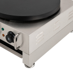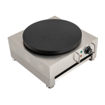 Велика плоска поверхня плити діаметром 15,75 дюймів, потужністю 2,8 кВт і оточуючим нагрівальним елементом забезпечують швидке й рівномірне нагрівання, тож ви можете готувати один великий креп або кілька менших млинців одночасно. А антипригарне покриття на поверхні запобігає прилипанню тіста до сковороди, тому млинець залишається цілим і ви можете насолоджуватися смачними млинцями.