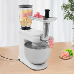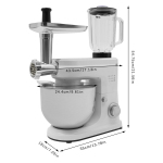 Його чаша для змішування забезпечує достатньо місця для інгредієнтів і оснащена віночком, збивачем і гачком для тіста, щоб ви могли легко змішувати різні інгредієнти та задовольняти харчові потреби себе та вашої родини. М’ясорубка за потреби подає свіжозмелене м’ясо, а м’ясоштовхач, що входить у комплект, забезпечує безпечне та комфортне використання. Скляна ємність для соку об’ємом 1,58 л дозволяє ділитися більше овочевим соком, фруктовим соком або смузі та готувати смачні напої для родини та друзів.
