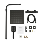 -21%Душова колона з термостатом Cncest 12 дюймів, квадратний верхній душ 30x30 см, ручний душ 8x8 см, латунь, нержавіюча сталь, захист