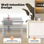 Міцний і довговічний Потовщена нержавіюча сталь 201 міцна, довговічна, стійка до корозії, іржі та не піддається деформації, що забезпечує тривалий термін служби. Водонепроникний дизайн Піднятий водозбірник на задній стінці та заглиблена конструкція бортика умивальника захищають стіни, підлогу та одяг від вологи і роблять його ще безпечнішим у використанні. Вишукане виконання Професійна обробка щіткою і фольгою надає поверхні металевий блиск і плавний вигин, роблячи її більш естетичною і атмосферною, одночасно захищаючи ваші руки від подряпин. Велика місткість Простора робоча поверхня та збільшена чаша забезпечують багато місця для очищення, зберігання та експлуатації. Легко встановлюється Проста конструкція і повний комплект монтажних аксесуарів дозволяють легко встановити систему за короткий час. Висока вантажопідйомність Посилені Н-подібні круглі опорні ніжки роблять конструкцію стійкою і забезпечують високу несучу здатність до 440 фунтів, щоб задовольнити ваші щоденні потреби. Легко чиститься Гладку поверхню з нержавіючої сталі можна підтримувати в чистоті, протираючи її м’якою тканиною. R-подібний закруглений кут раковини запобігає накопиченню бруду в глухому кутку та полегшує очищення. Зручний для користувача дизайн Завдяки правильній висоті (91 см) вам більше не доведеться нахилятися, щоб помити посуд. Збільшений зливний отвір забезпечує швидкий злив води, уникаючи тривалого часу очікування або засмічення. Заявка Підходить для миття посуду, каструль і сковорідок, фруктів і овочів, м'яса, одягу тощо в ресторанах, пральнях, магазинах, підсобних приміщеннях, лабораторіях, ресторанах, їдальнях, кафе, садах, складах тощо. Вишукане виконання Професійне брашування та покриття фольгою надає поверхні металевого блиску та плавного вигину, роблячи її більш естетичною та атмосферною, одночасно захищаючи ваші руки від подряпин. Технічні характеристики Колір: Срібло Матеріальний: Нержавіюча сталь 201 Форма: Прямокутна Стиль: Сучасний Кількість басейнів: 1 Тип кріплення: Окремо стоячий Потрібна збірка: Так. Кут крана: 360° Процедура: Матове, фольговане покриття Вантажопідйомність: 200 кг Товщина плити: 1 мм Розмір продукту: 100 x 60 x 93 см Розмір упаковки: 105 x 62 x 38 см Вага брутто: 13 кг Вага нетто: 11 кг 1* Мийка з нержавіючої сталі 2* H-подібні ніжки 4* Регульовані ніжки 1* зливний фільтр 1* Кришка 1* Водопровідний кран 1* Зливна труба 2* вхідні труби 1 * мішок для зберігання Всі аксесуари, необхідні для встановлення Технічні характеристики