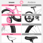 Рама з вуглецевої сталі: Ергономічний принцип, потовщена стінка каркасної труби, більша несуча здатність Технологія подвійного гальма для забезпечення безпеки дітей: Підголівник сидіння можна регулювати, щоб вибрати висоту, яка підходить для дітей Зносостійке допоміжне колесо: Допоміжне колесо виготовлене з екологічно чистого матеріалу, який не пошкоджує підлогу, є неслизьким, зносостійким і має тривалий термін служби Неслизькі та зносостійкі шини: Потовщені та розширені гоночні шини нетоксичні, екологічно чисті та виглядають стильно, зберігаючи при цьому високий рівень зносостійкості та міцності підлоги Вражаюче: Сучасний та яскравий дизайн у рожево-чорних кольорах робить його безсумнівно привабливим для очей у натовпі. Регульована конструкція: Висоту підлокітника можна регулювати від 27,75 до 29,52 дюймів, а висоту сидіння - від 22,04 до 26,37 дюймів, що дозволяє дітям зростом від 3,28 до 4,42 футів їздити на велосипеді з комфортом. Легко керувати: Коротша відстань (0,98 дюйма) між гальмівним важелем і гумовою накладкою полегшує маленьким дітям захоплення і натискання важеля. Зручна посадка: Поліуретанова поверхня та подушка з губчастим наповнювачем рівномірно розподіляють зусилля під час їзди на велосипеді, а м'яко вигнутий дизайн відповідає ергономіці, тому ваші діти почуватимуться комфортно протягом тривалого часу під час катання. Збільшені педалі: Педалі PC з більшою контактною поверхнею дозволяють нижнім кінцівкам дитини розташовуватися зручніше, що робить її менш схильною до нещасних випадків. Протиковзкий підлокітник: Покриті гумою підлокітники з нековзною текстурою забезпечують стабільне та зручне тримання. Технічні характеристики Матеріальний: Вуглецева сталь, сталь, гума, губка, ПК, пластик, ПУ Колір: Рожевий, чорний Стиль: Сучасний і простий Обробка поверхні: Пластикове розпилення; захист зварних швів вуглекислим газом Гальма: Гальмівний супорт (передній), стопорне гальмо (задній) Потрібна збірка: Так. Застосовна висота: 100-135cm/3.28-4.42ft Максимальна вантажопідйомність: 50 кг/110 фунтів Відповідний вік: 5-8 років Відстань між гальмівним важелем і гумовою накладкою: 2,5 см/0,98 дюйма Діаметр колеса: 40cm/16inch Регулювання висоти сидіння: 56-67cm/22.04-26.37inch Регулювання висоти підлокітника: 70.5-75cm/27.75-29.52inch Відстань до підлокітників: 53cm/20.86inch Вага брутто: 9,55 кг / 20,94 фунта Вага нетто: 8,25 кг/18,18 фунтів Розмір виробу (Д*Ш): 110*37.5cm/43.3*14.76inch Розмір пакета: 89.5*18.5*45cm/35.23*7.28*17.71inch У комплекті 1 * Дитячий велосипед 1* Багатомовна інструкція Всі аксесуари для монтажу Детальніше Думаєте, що подарувати дитині? Велосипед може стати чудовим сюрпризом. Цей 16-дюймовий велосипед підходить для дітей зростом від 105 до 135 см (зазвичай у віці 5-8 років). Він виготовлений з вуглецевої сталі, яка є міцною та має високу навантажувальну здатність. Він також має регульоване сидіння, тож вам не доведеться часто міняти велосипед для своїх дітей, навіть коли вони підростуть. Технічні характеристики | Матеріал | Вуглецева сталь, сталь, гума, губка, ПК, пластик, ПУ | Колір | Рожевий, чорний | | Стиль | Сучасний і простий | Обробка поверхні | Пластикове розпилення; захист зварних швів вуглекислим газом | | Гальма. | Гальмівний супорт (передній), стопорне гальмо (задній) | Потрібна збірка | Так. | | Застосовна висота | 100-135cm/3.28-4.42ft | Максимальна вантажопідйомність | 50 кг/110 фунтів | | Відповідний вік | 5-8 ро