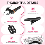 Висота сидіння регулюється, щоб дитині було максимально комфортно їхати. Також є ручки для підйому велосипеда або крутіння педалей. Педаль на платформі з подвійним шаром гуми запобігає ковзанню.
