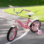 Дитячий велосипед 14 дюймів з навчальними колесами і ручним гальмом від 3 років (рожевий)